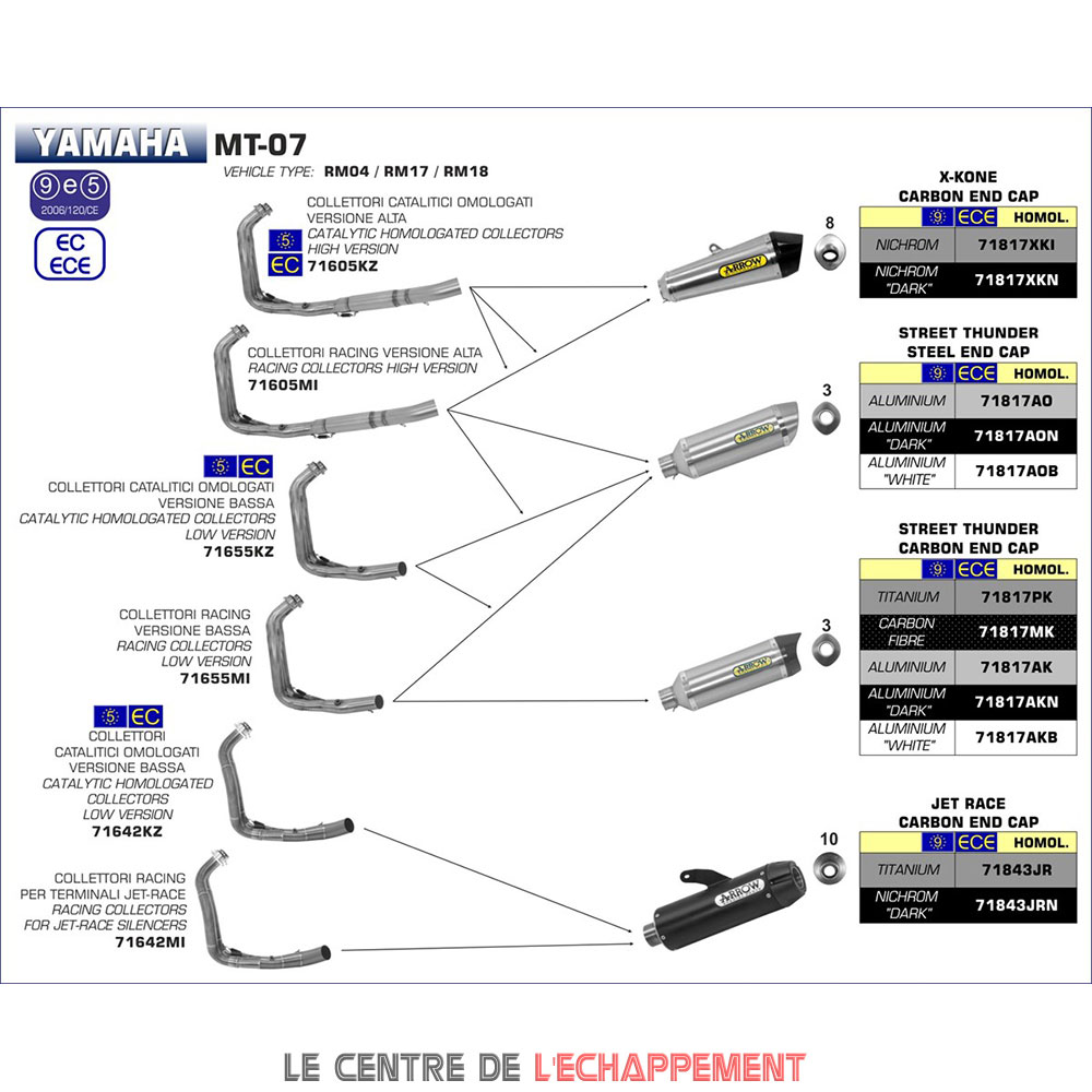 Ligne Complète ARROW Thunder pour Yamaha MT07 2014-2020 et MT07 Tracer / GT 2016-2020 (position basse)