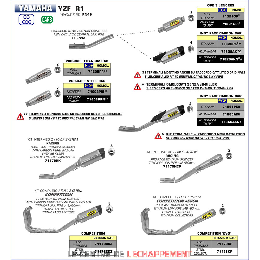 Ligne Complète ARROW Race Tech Competition Adapt. Yamaha YZF 1000 R1 2015-... (coupelle carbone)(collecteur titane)