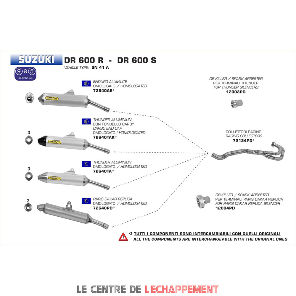 Silencieux ARROW Paris Dakar Adapt. Suzuki DR 600 S/DJEBEL 1985-1989 et DR 650 R (DJEBEL) 1990-1991