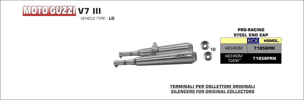 Silencieux ARROW Pro Racing Adapt. Moto Guzzi V 7 III 2017-..., V 7 STONE 2017-... et V 7 SPECIAL 2017-...