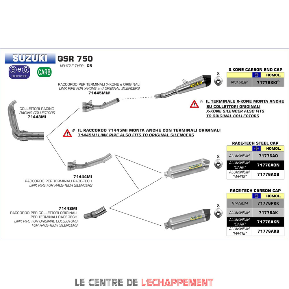 Silencieux ARROW X-Kone Adapt. Suzuki GSR 750 2011-… et GSX 750 S 2017-2021 (coupelle carbone)