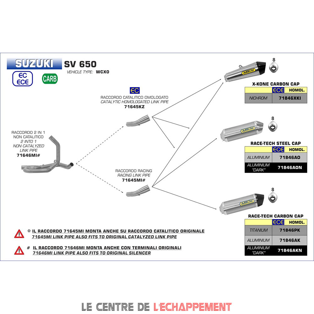 Silencieux ARROW X-Kone Adapt. Suzuki SV 650 2016-... (coupelle carbone)