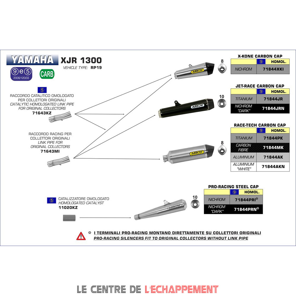 Silencieux ARROW X-Kone Adapt. Yamaha XJR 1300 /SP 2007-2017 (coupelle carbone)