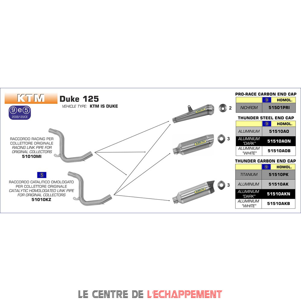 Silencieux ARROW Thunder (coupelle carbone) Adapt. KTM 125 DUKE 2011-2016 et 200 DUKE 2012-2016