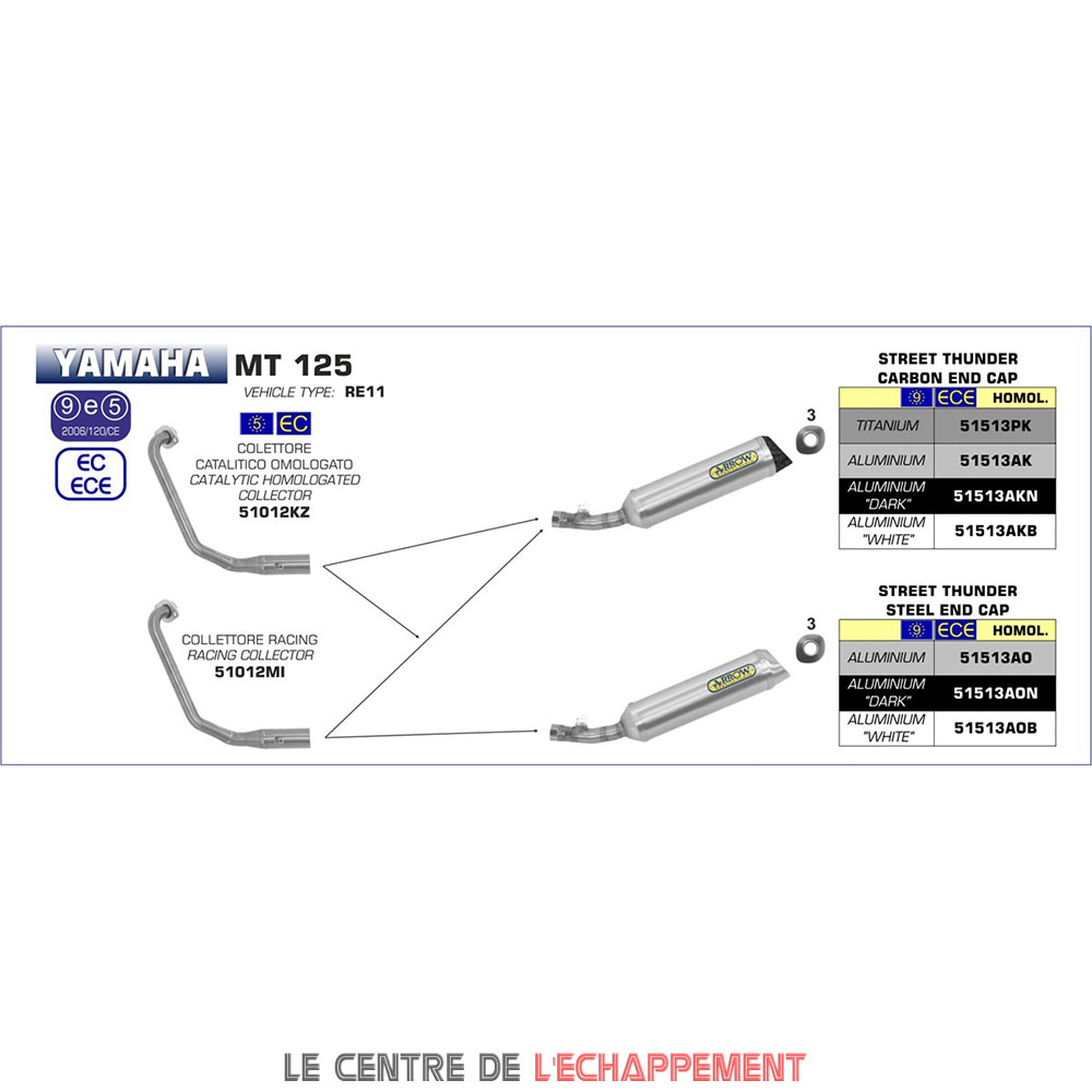 Ligne Complète ARROW Street Thunder Yamaha MT 125 2014-2019
