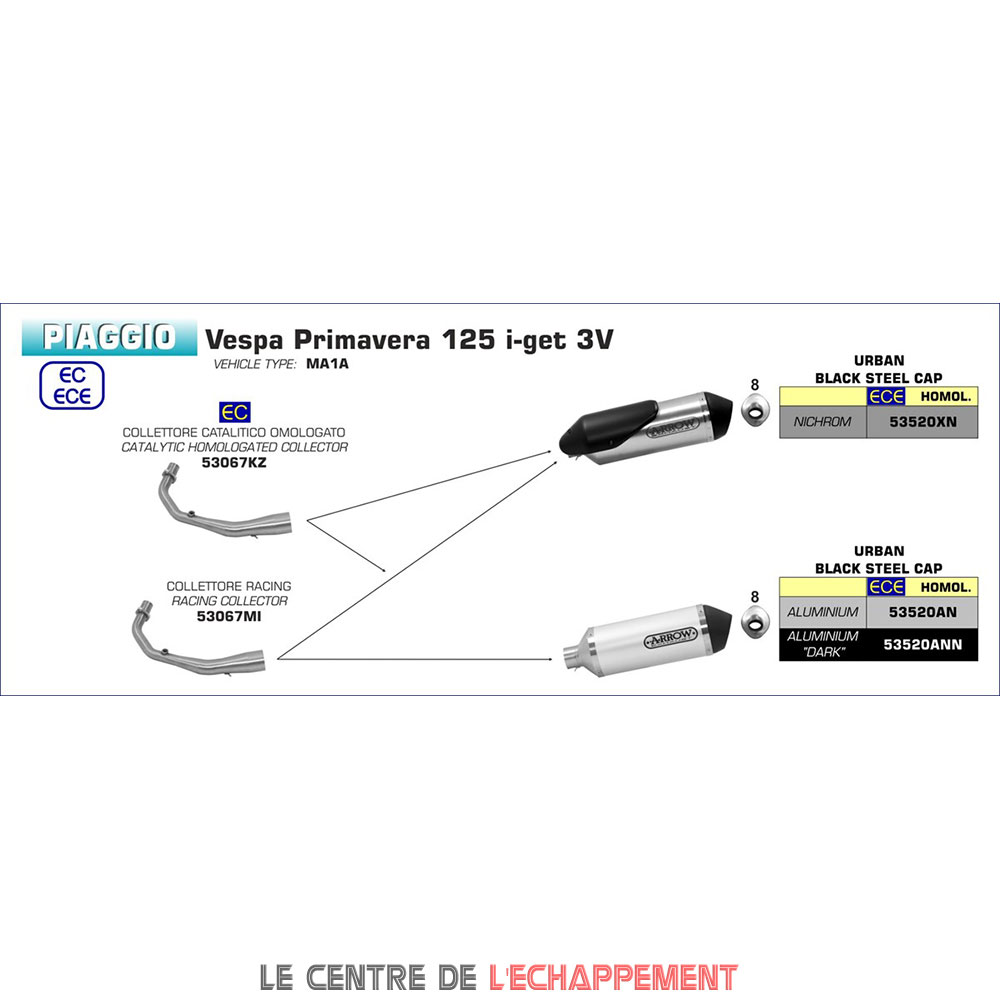 Ligne Complète ARROW Urban Piaggio VESPA PRIMAVERA I-GET 2017-... Avec catalyseur