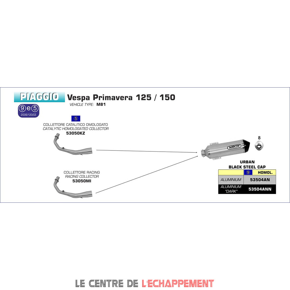 Ligne Complète ARROW Urban Adapt. Piaggio VESPA PRIMAVERA 2014-2016