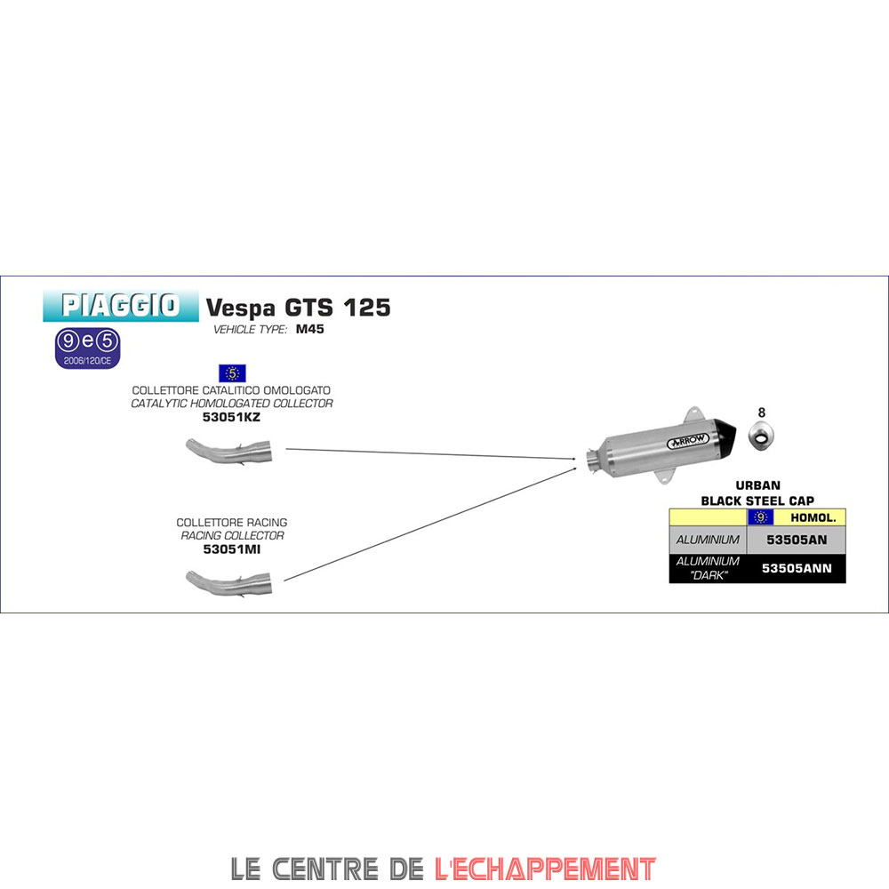 Silencieux ARROW Urban Adapt. Piaggio VESPA 300 GTS SUPER 2008-2016, 300 GTS SUPERSPORT 2010-2015 et 125 GTS SUPER IE 2009-2016
