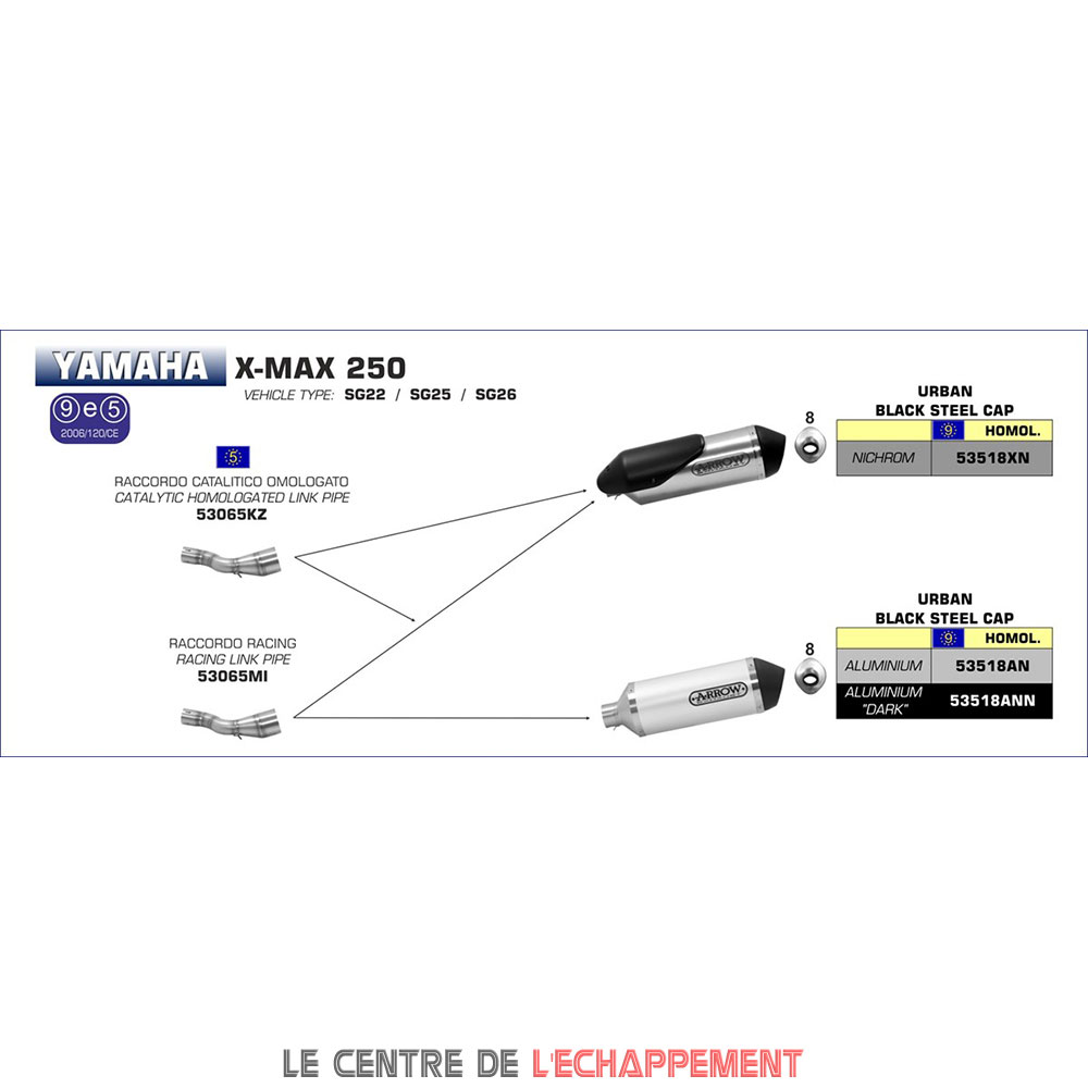 Ligne Complète ARROW Urban Yamaha X-MAX 250 2006-2016