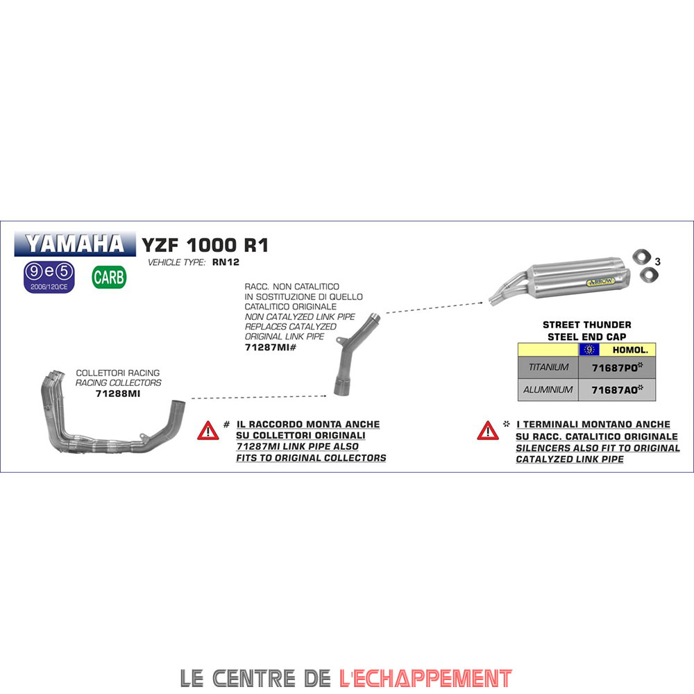 Silencieux ARROW Street Thunder Adapt. Yamaha YZF 1000 R1 2004-2006