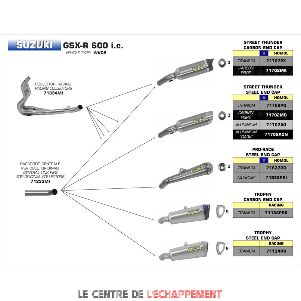 Ligne Complète ARROW Street Thunder Adapt. Suzuki GSX R 600 (01-10) 2006-2007 et GSX R 750 2006-2007