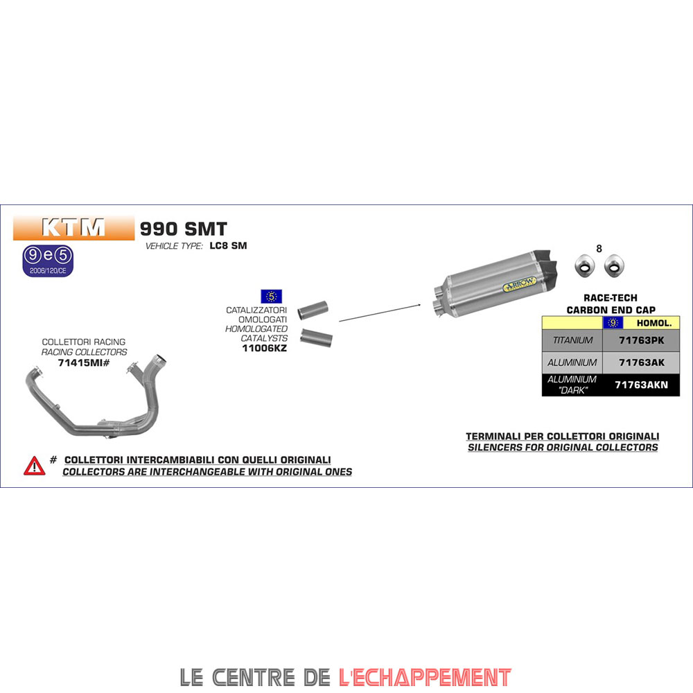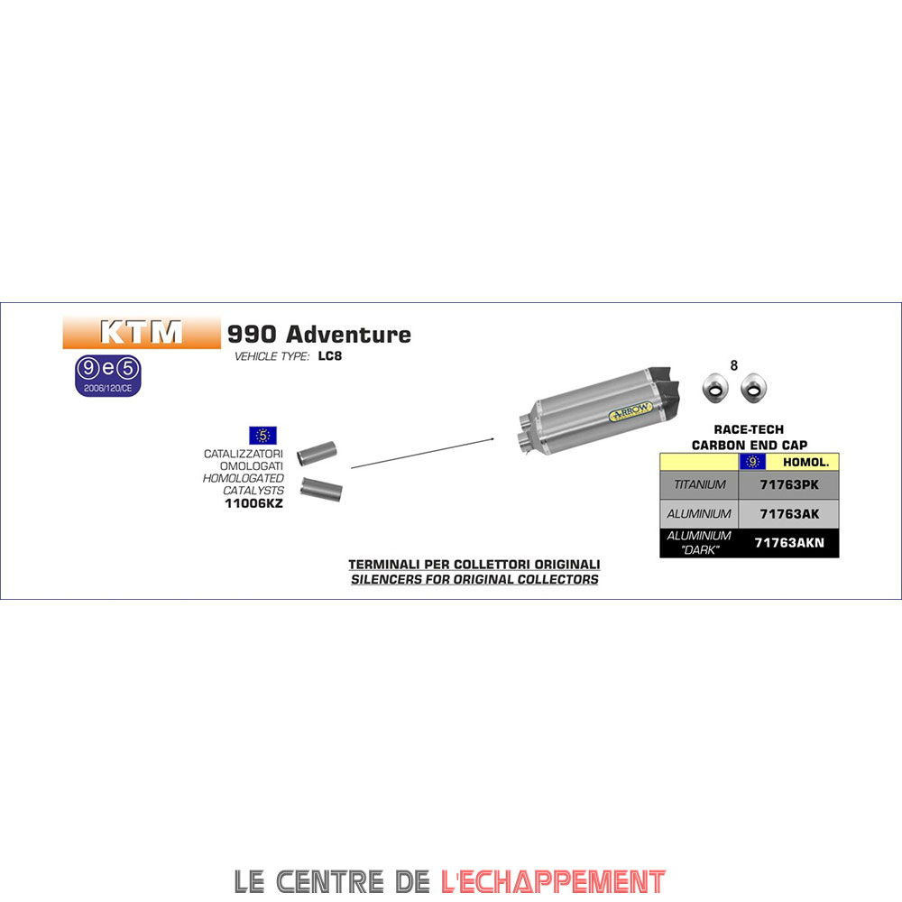 Silencieux ARROW Race Tech (coupelle carbone) Adapt. KTM 990 ADVENTURE 2006-2013 et 990 SMT 2009-2013
