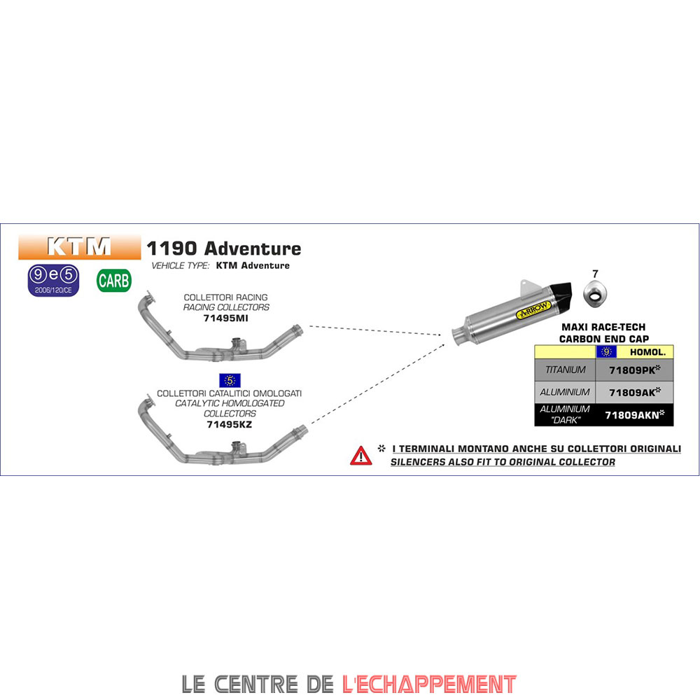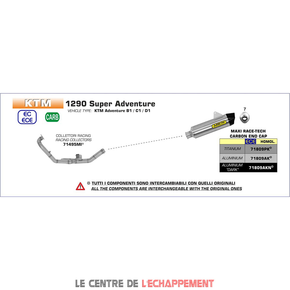 Ligne Complète ARROW Maxi Race Tech Adapt. KTM 1090 ADVENTURE / ADVENTURE R 2017-2020, 1190 ADVENTURE 2013-2016 et 1290 SUPER ADVENTURE 2015-2020 (coupelle carbone)