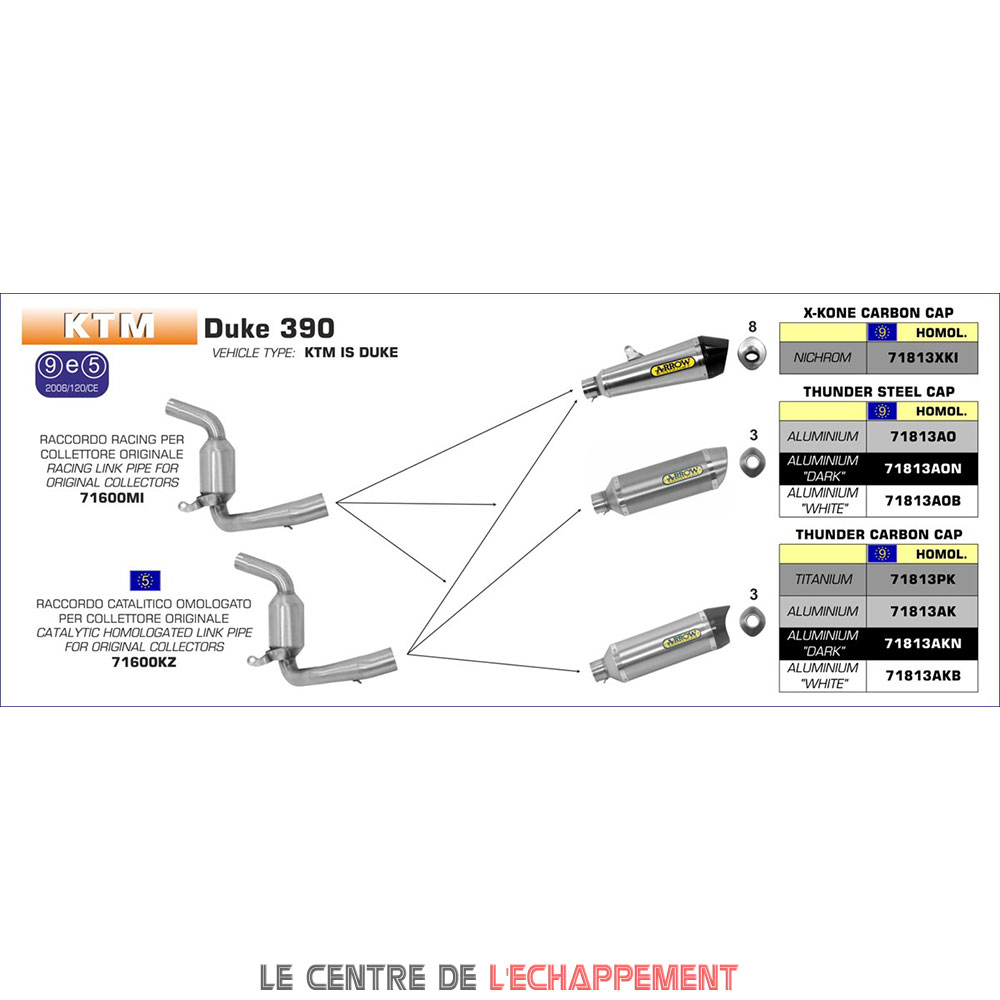 Demi Ligne ARROW Thunder Adapt. KTM 390 DUKE 2013-2016