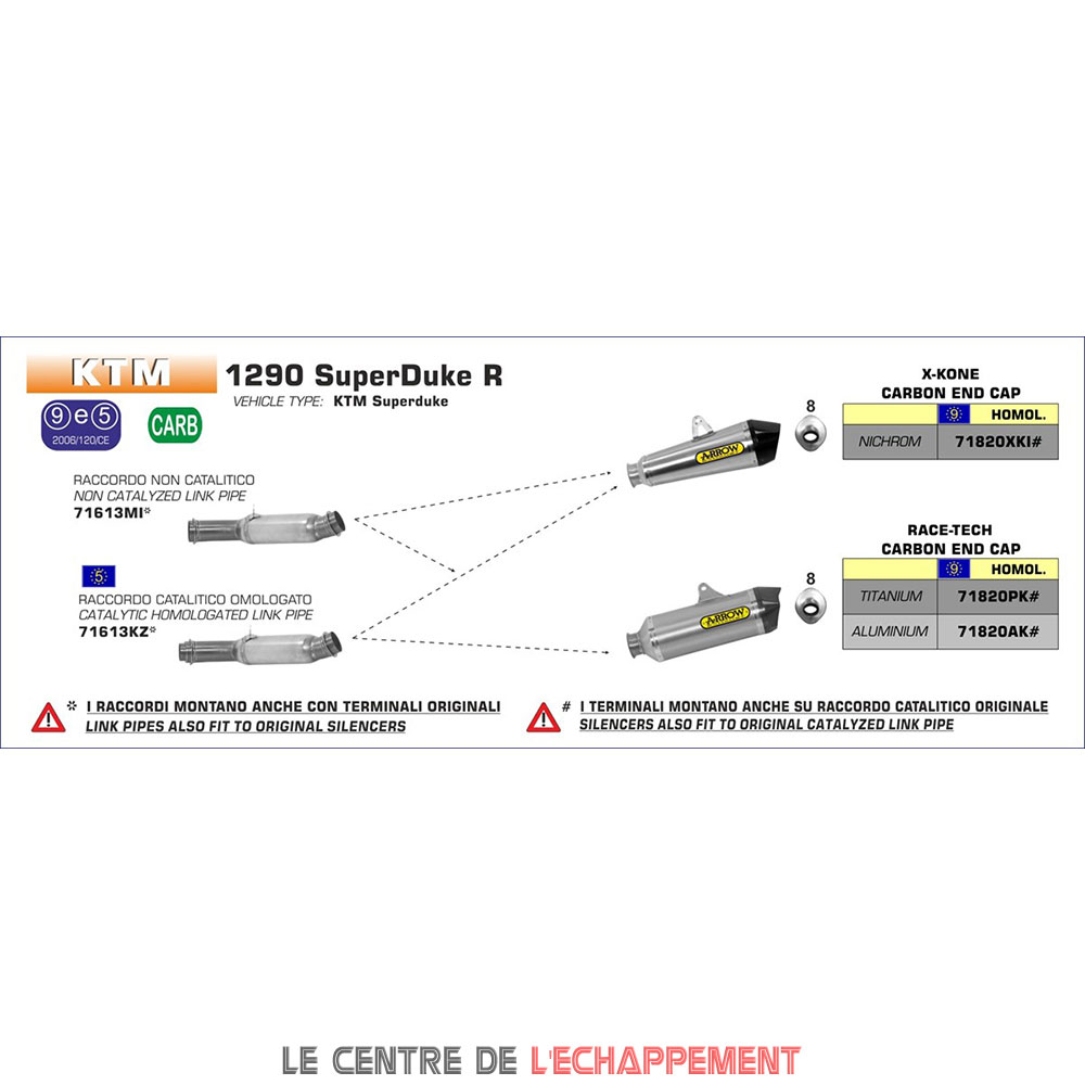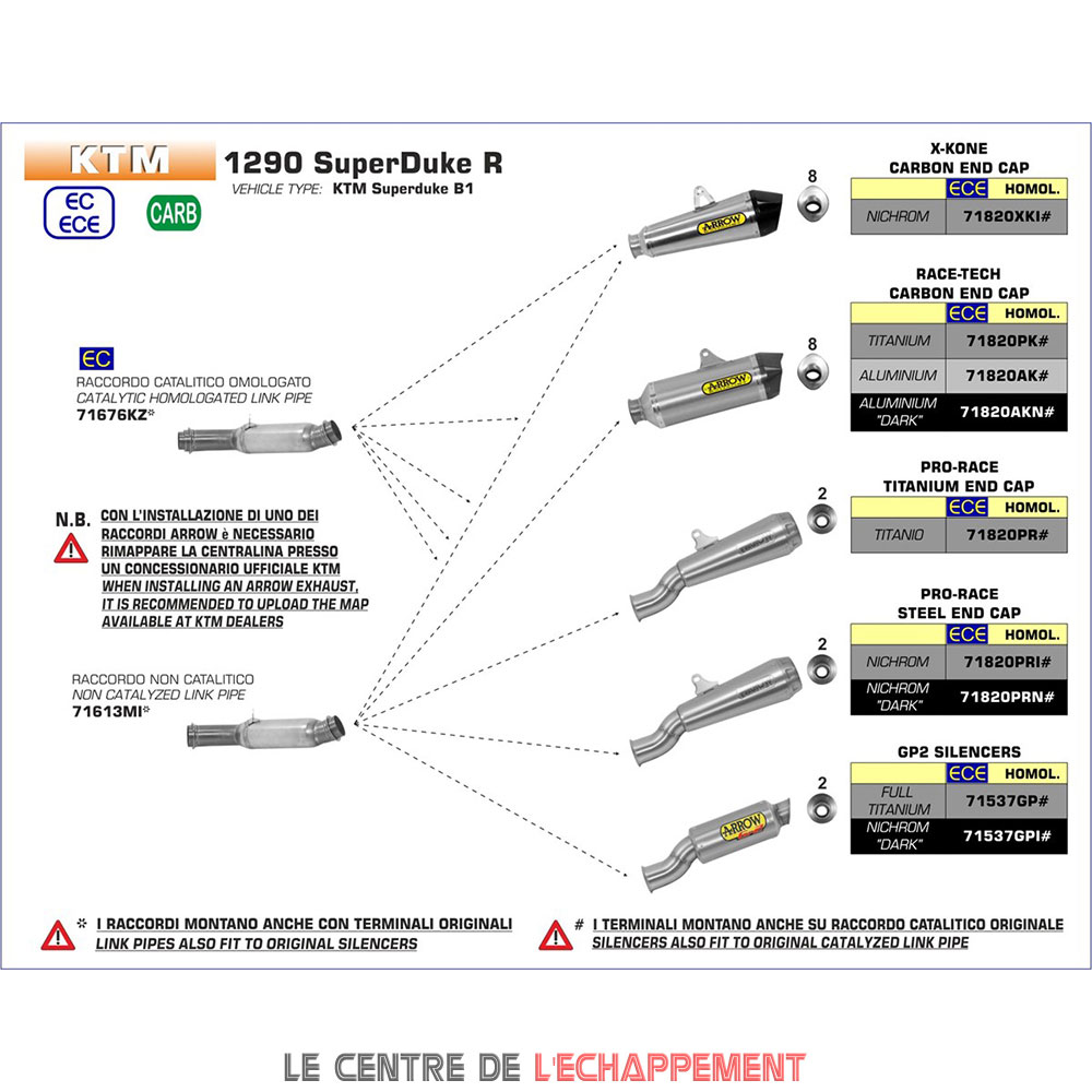 Demi Ligne ARROW Pro Race Adapt. KTM 1290 SUPER DUKE R 2014-2019 (coupelle titane)(prevoir re-mapping)