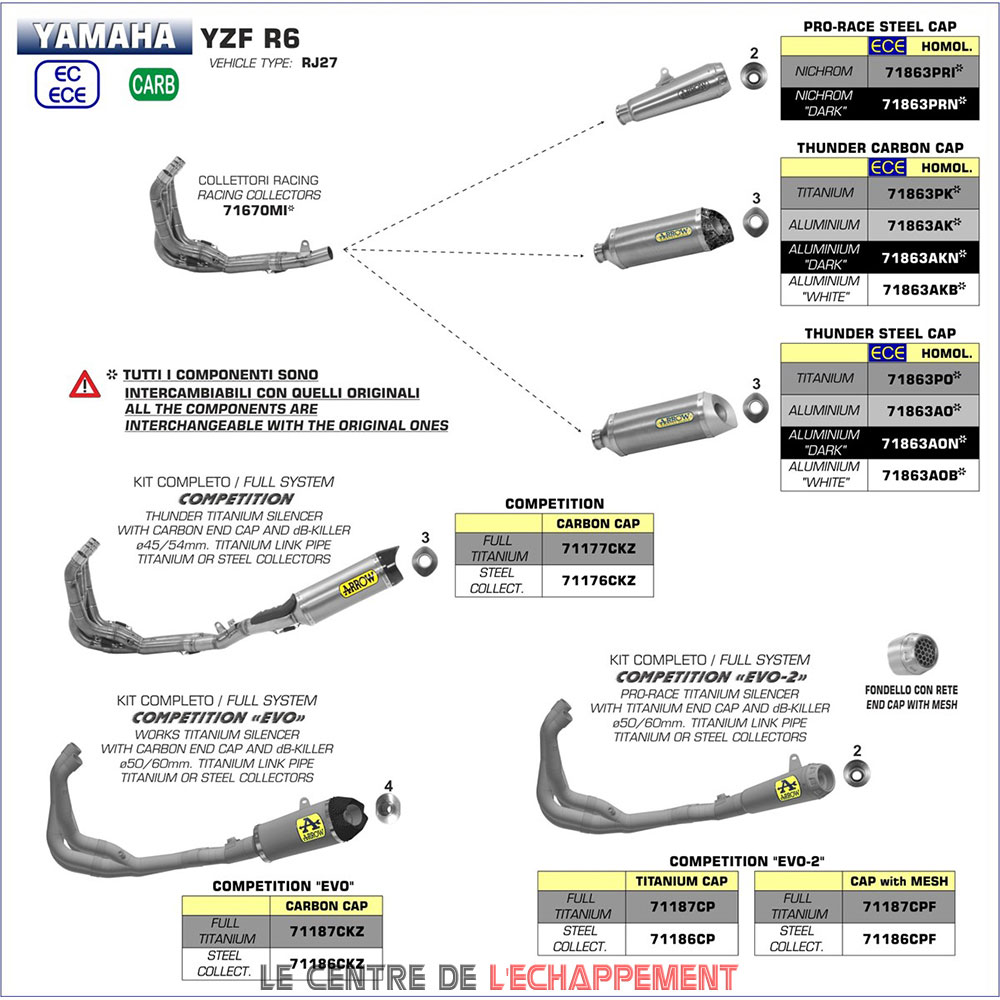 Silencieux ARROW Pro Race Adapt. Yamaha YZF 600 R6 2017-2021