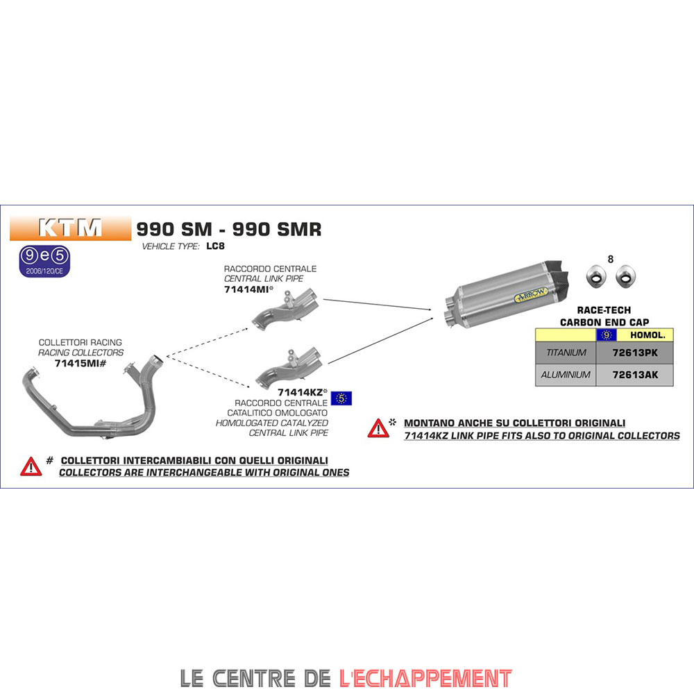 Ligne Complète ARROW Race Tech Adapt. KTM 950 SUPERMOTO 2005-2010 et 990 SUPERMOTO 2008-2013 (coupelle carbone)
