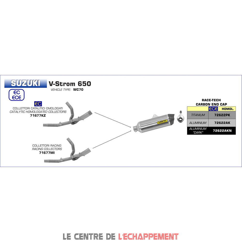 Demi Ligne ARROW Race Tech Adapt. Suzuki DL 650 V-STROM 2017-... (coupelle carbone)
