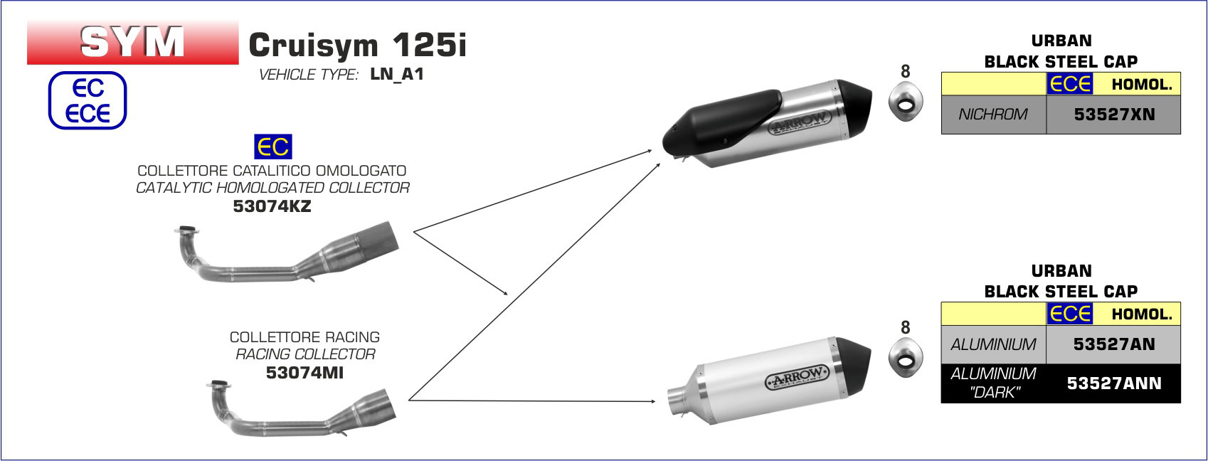 Ligne complète ARROW URBAN Adapt. Sym CRUISYM 125 2018-... Homologué Euro 4