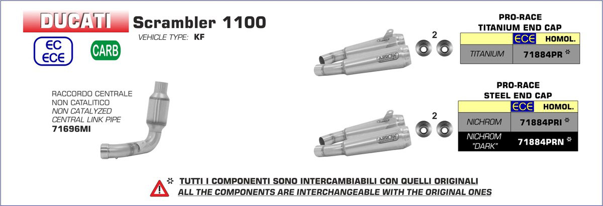 Demi Ligne ARROW PRO-RACE Adapt. Ducati SCRAMBLER 1100 2018-2020